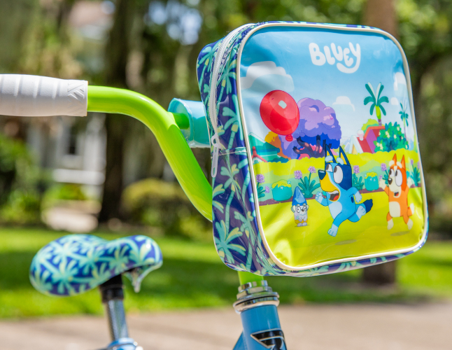 Comes with a custom-designed Bluey handlebar bag—perfect for carrying small treasures, snacks, or favorite toys on every ride, so kids can bring a little bit of fun wherever they go.