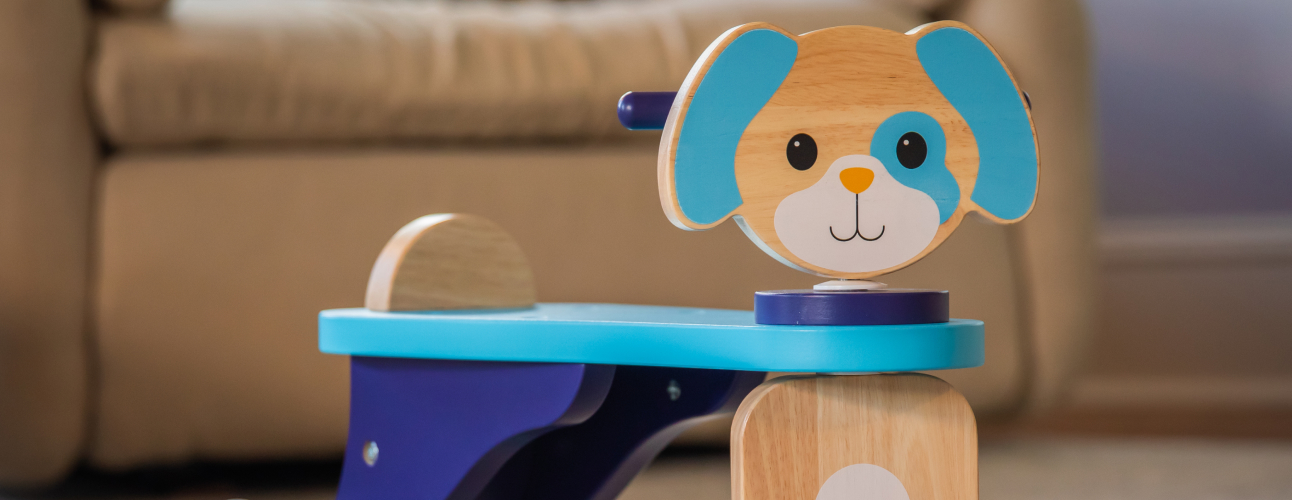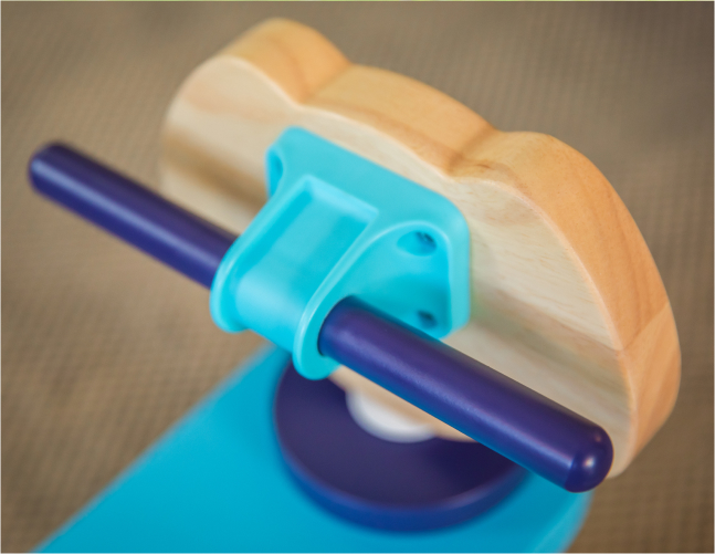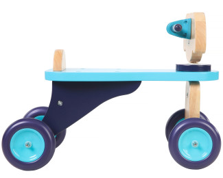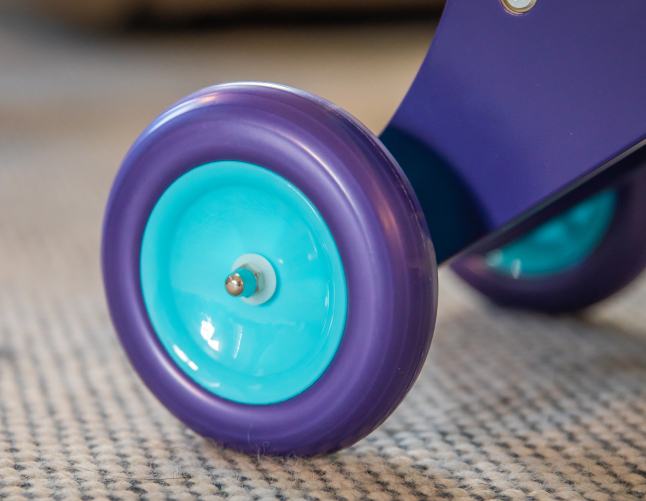 Made of solid wood with metal components and four EVA wheels, this ride-on is built to last through years of play.