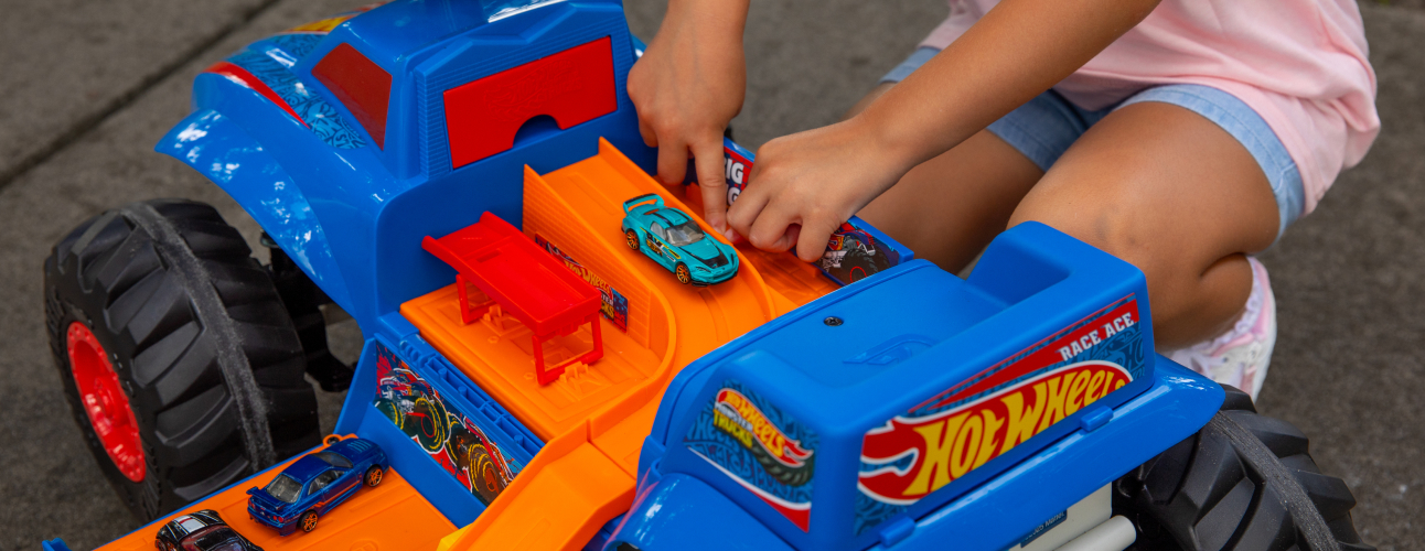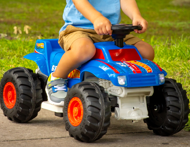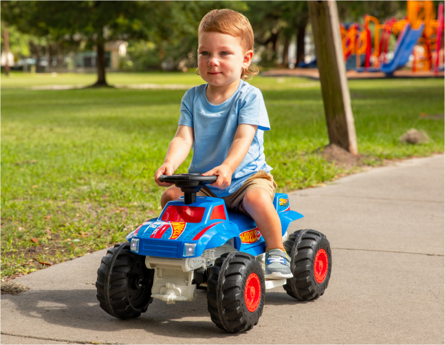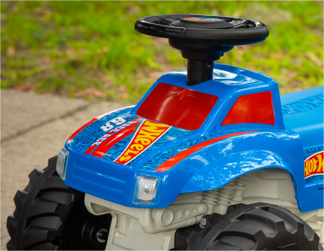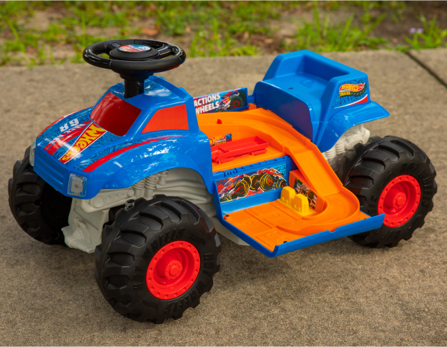 Simple foot pedal acceleration gives young drivers full control of their monster truck, letting them control the adventure.