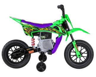Realistic motocross styling with high-rise handlebars, fenders, and engine detailing bring the acti to life. The iconic TMNT color palette of green, purple, and black transforms every ride into a bold adventure.